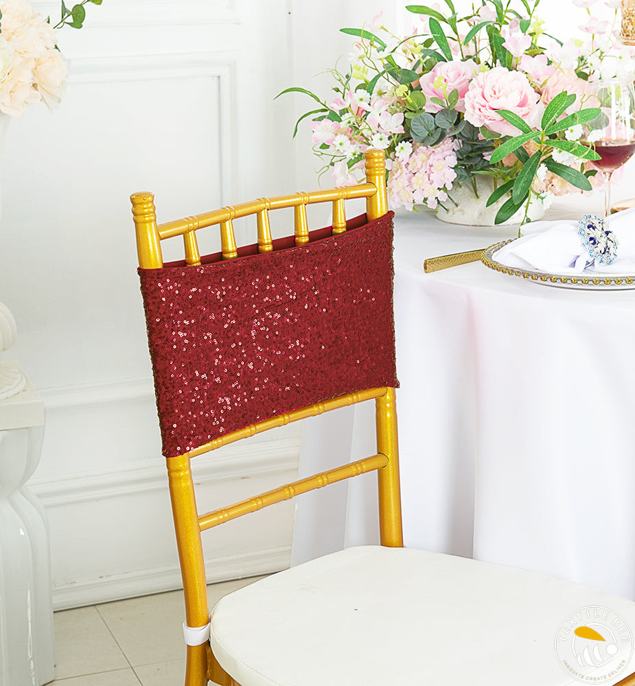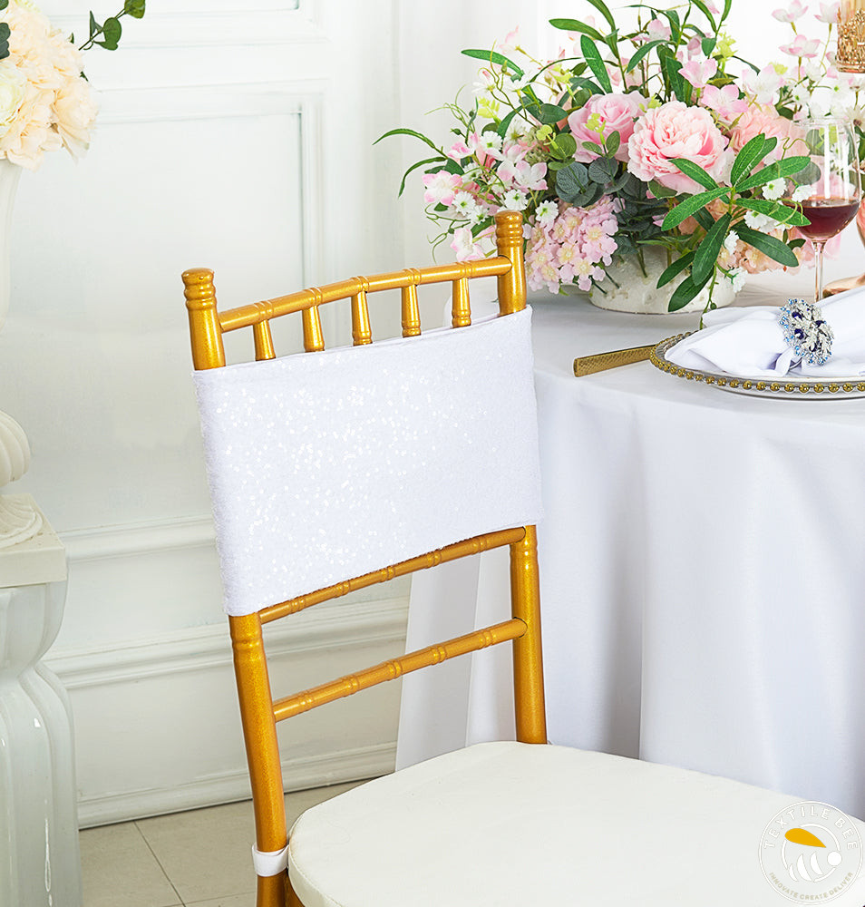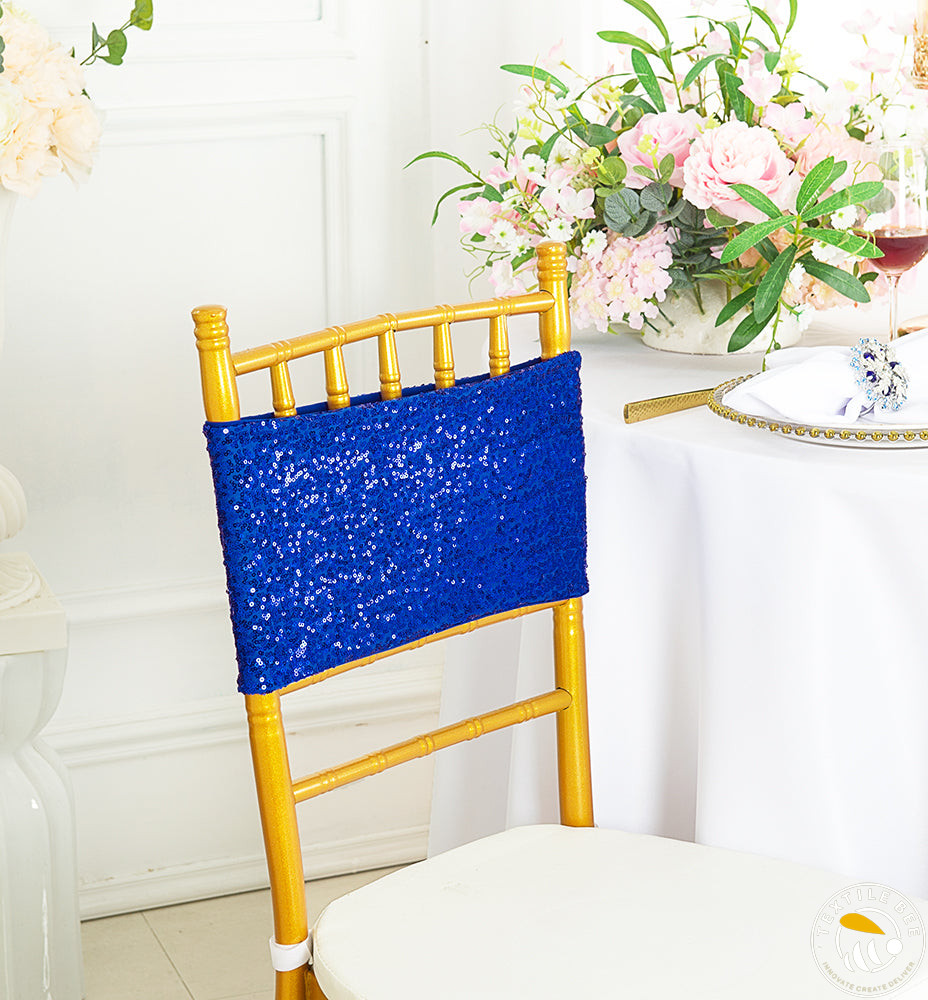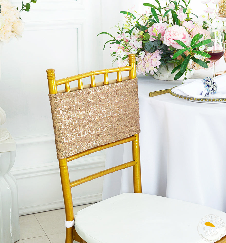 Add sparkle and glamour to your event décor with our 3mm Sequence Chair Bands. Crafted with shimmering 3mm sequins sewn onto a flexible base, these chair bands catch the light beautifully, making every chair a centerpiece. Perfect for weddings, parties, and celebrations where you want to impress your guests with a touch of elegance and shine.