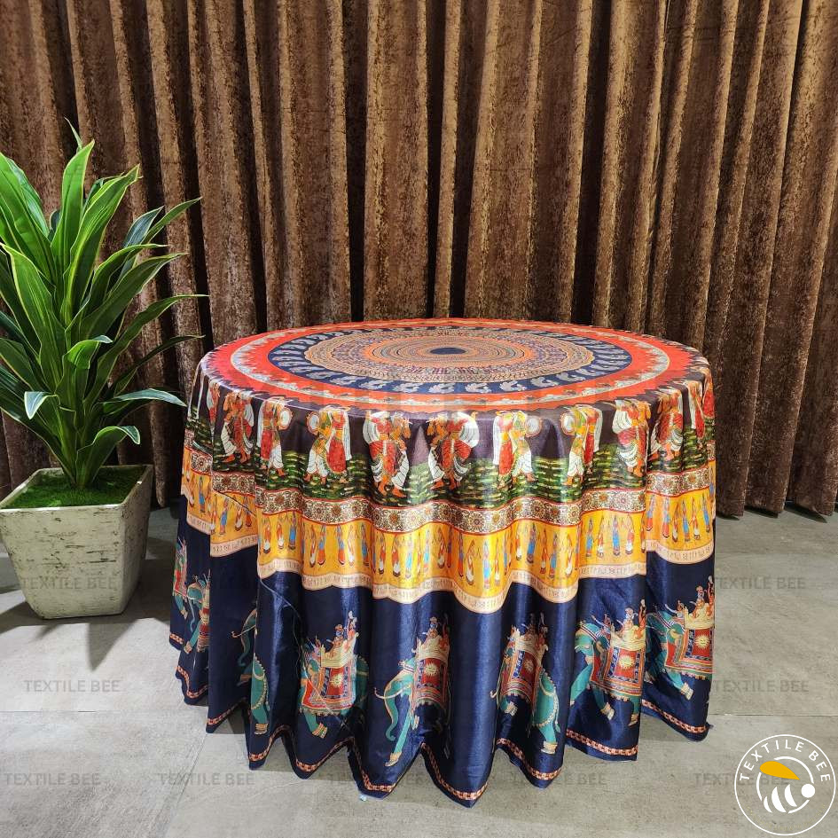 Elevate your décor with our Blue Base Round Table Rounders (9x9 Feet). Featuring a rich blue foundation, these covers add charm and elegance to any event. The versatile base makes them perfect for embroidery, applique, sequin, patchwork, or mirror work, creating a stylish and luxurious table setup. Made from premium velvet or polyester fabric, they are durable, reusable, and suitable for both traditional and modern themes.