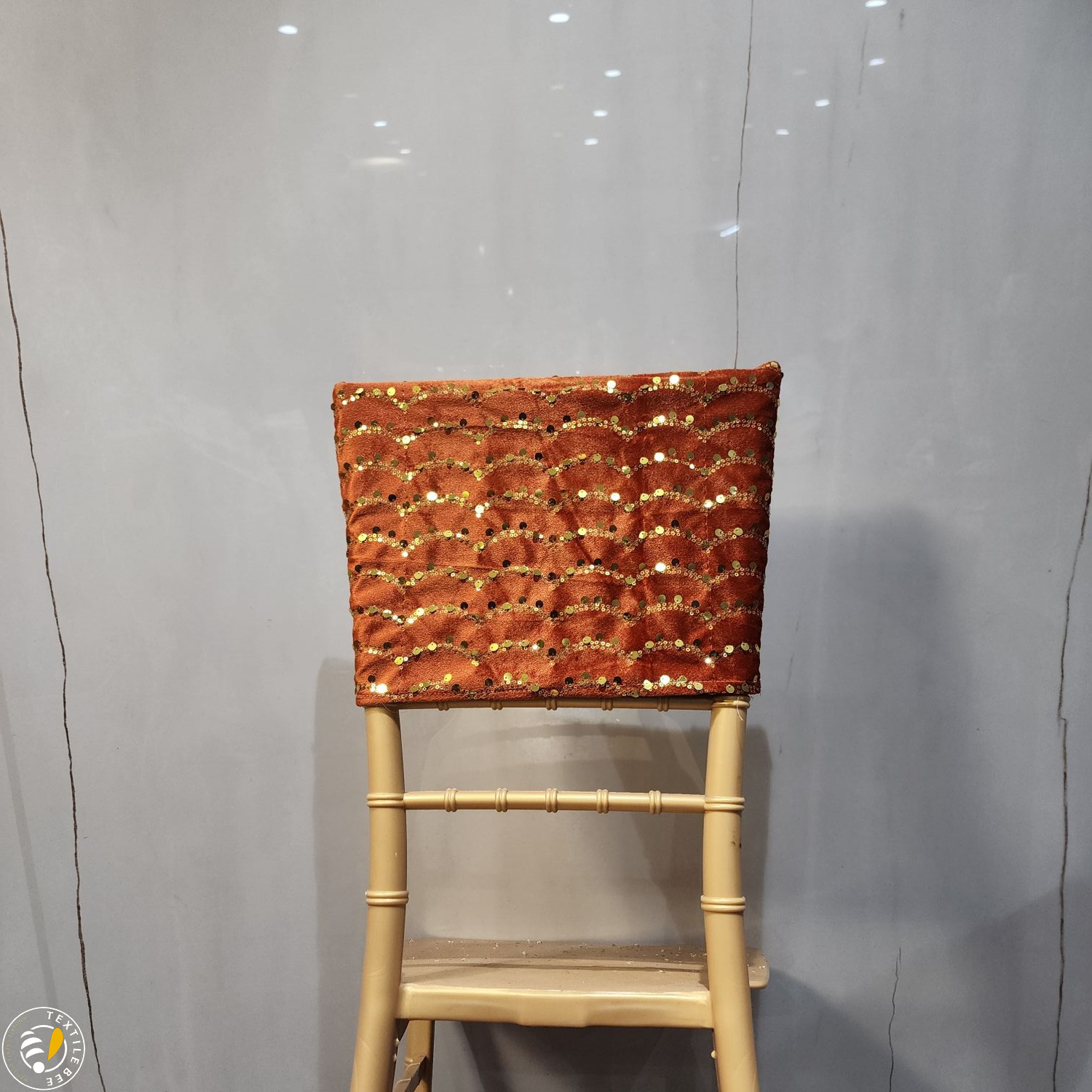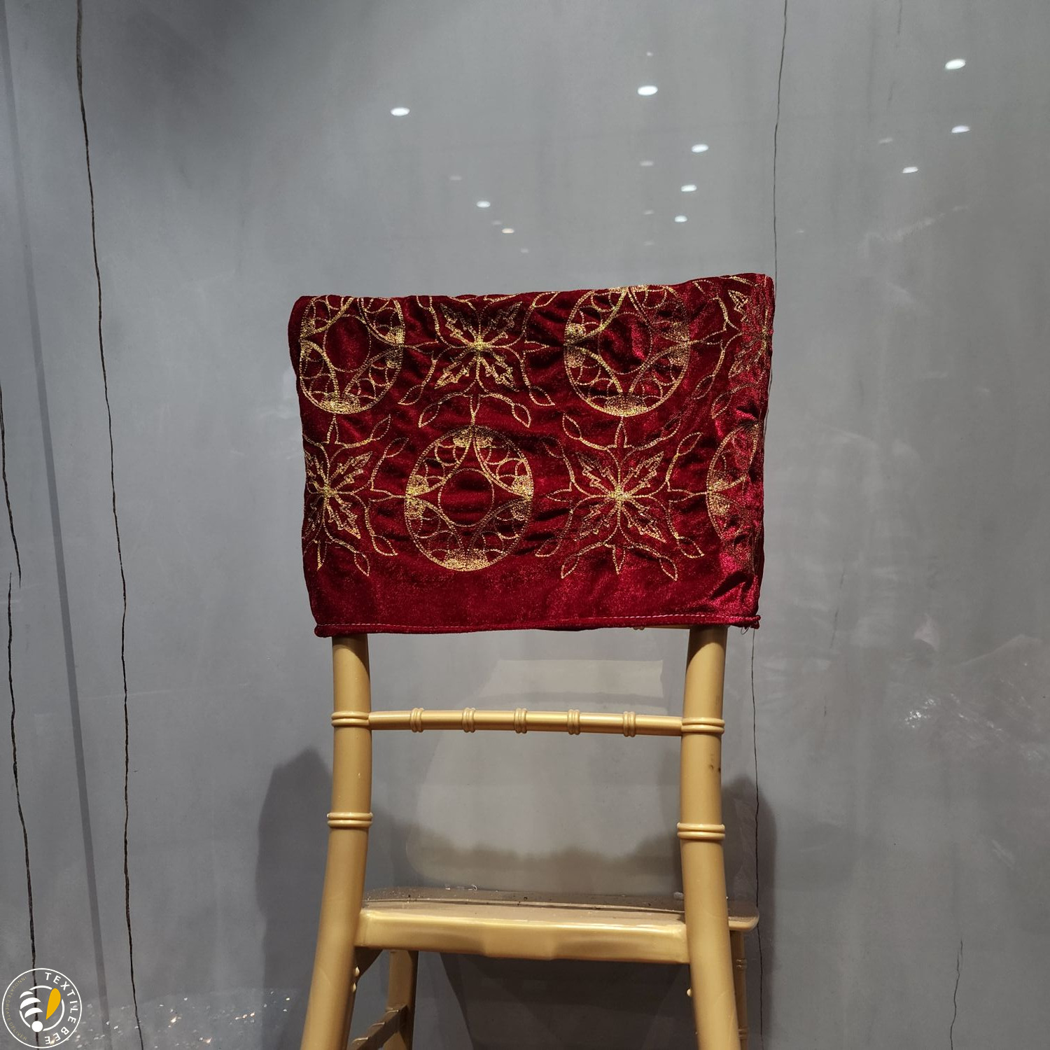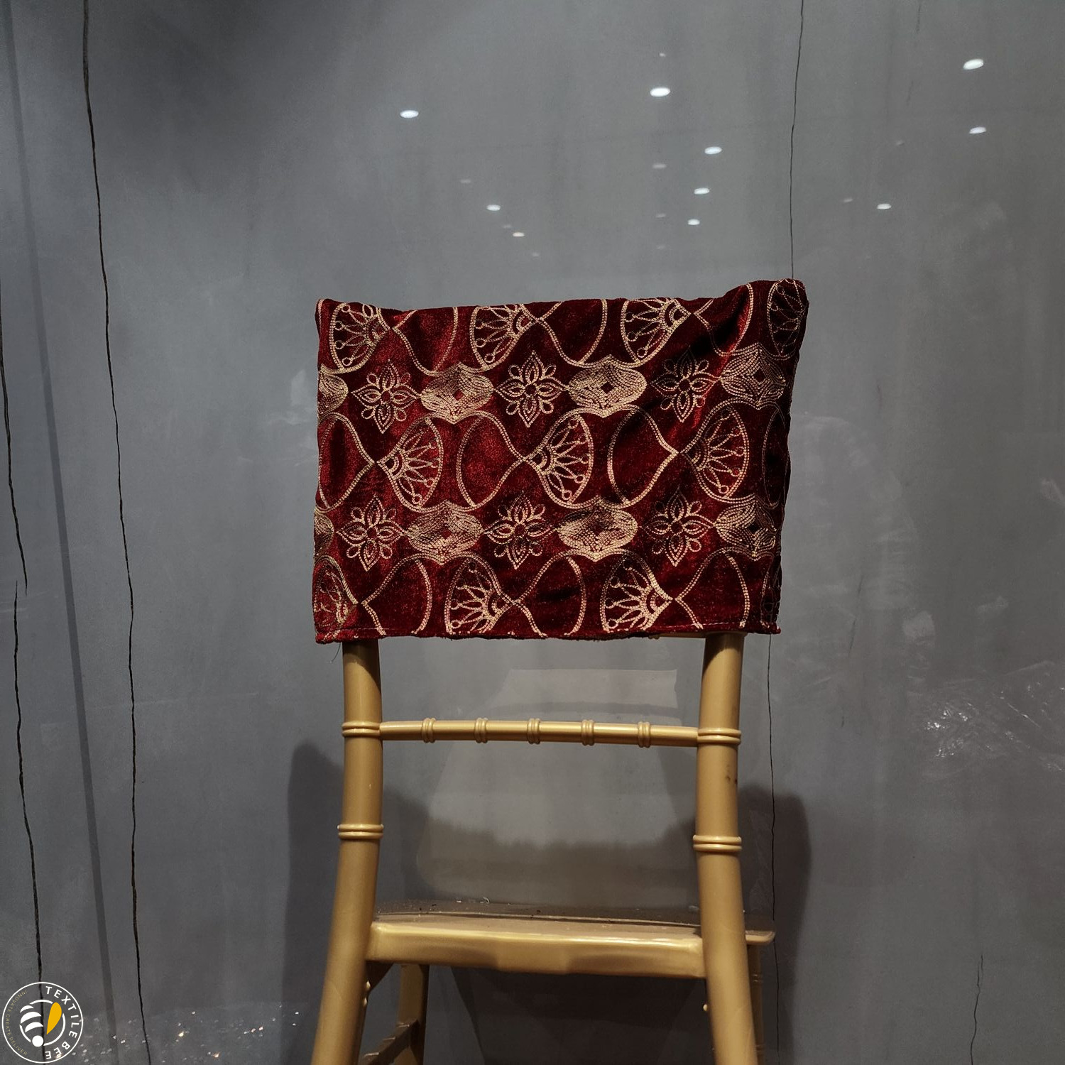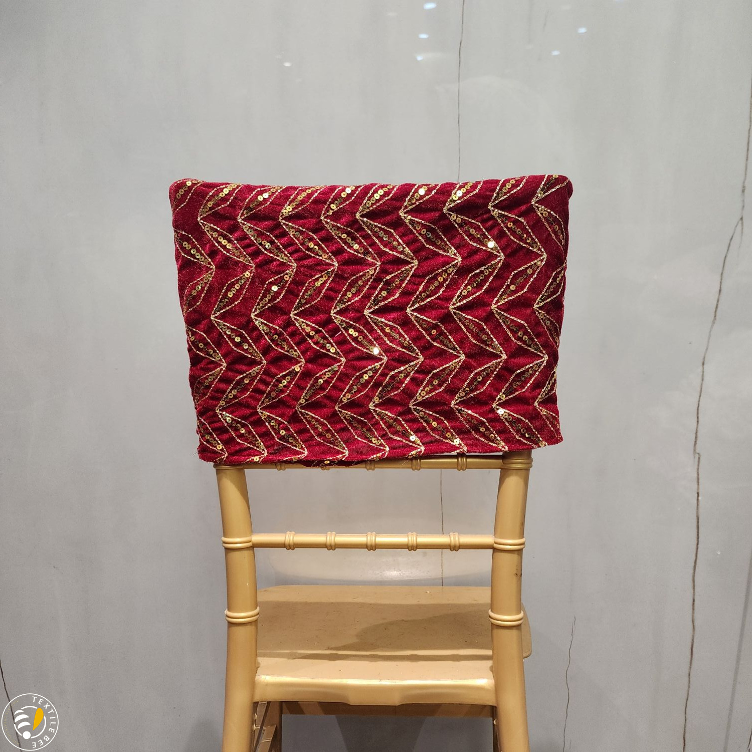 Bring a regal touch to your event seating with our Embroidered Chair Caps. Featuring a deep maroon velvet base adorned with intricate golden thread embroidery and shimmering sequins, these caps instantly elevate the look of any banquet or Chiavari chair. Perfect for weddings, receptions, festive events, and grand celebrations, they combine luxurious texture with fine craftsmanship to create a statement piece for your décor.