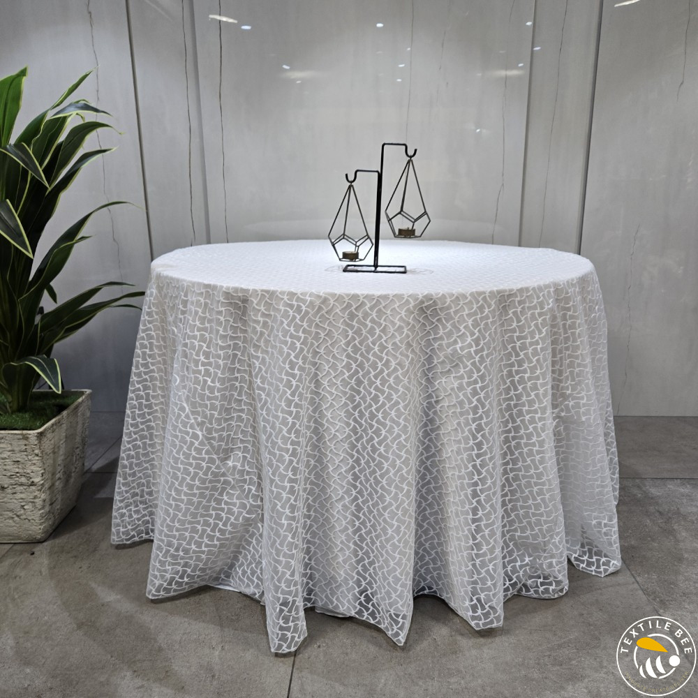 Enhance your event décor with the sheer beauty and intricate artistry of our Embroidered Net Rounders with Underlay. Featuring delicate embroidery on transparent net fabric layered over a smooth underlay, these round table covers create a stunning visual effect that’s both elegant and sophisticated. Perfect for weddings, receptions, and formal celebrations, they add a graceful, ethereal charm to every table setting.