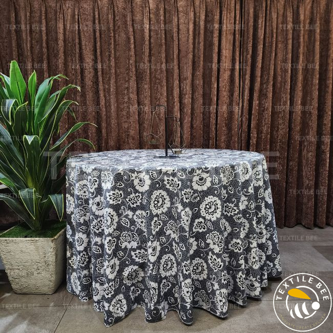 Bring timeless charm to your décor with our Floral Elegance Printed Table Rounders. Featuring intricate floral and leaf patterns, this design blends classic artistry with modern appeal, making it an ideal choice for weddings, parties, or everyday dining setups. Crafted from premium fabric, it drapes beautifully over tables, adding sophistication and style to any event.