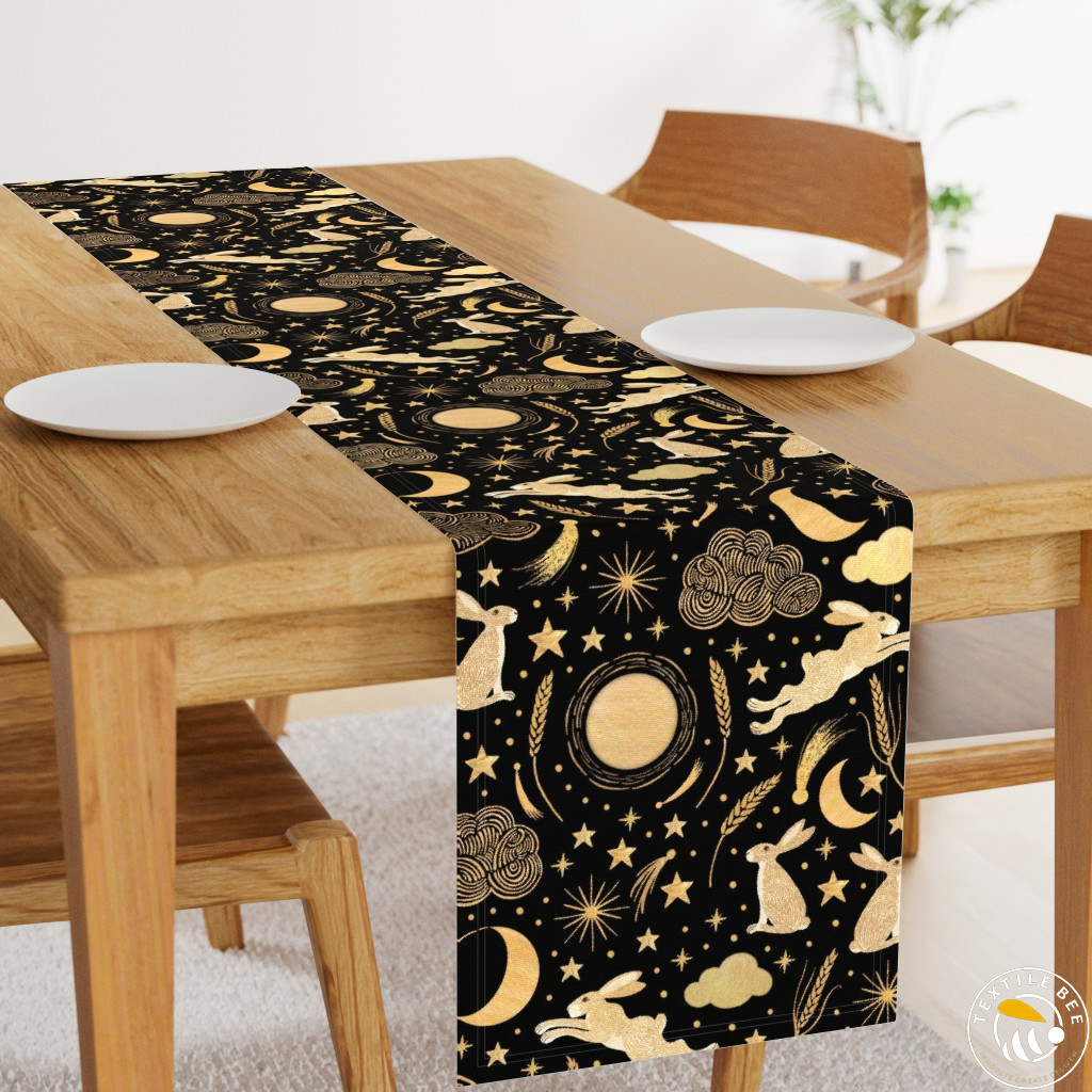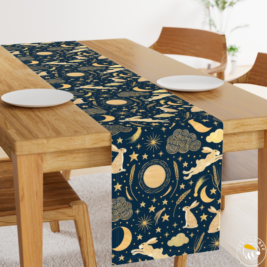 Celebrate folklore and charm with our Harvest Moon Hares Printed Table Runners. Featuring artistic hare motifs leaping under a glowing moon, this design captures the spirit of harvest nights and storytelling traditions. A unique blend of whimsy and elegance, it brings warmth and character to any table setting.