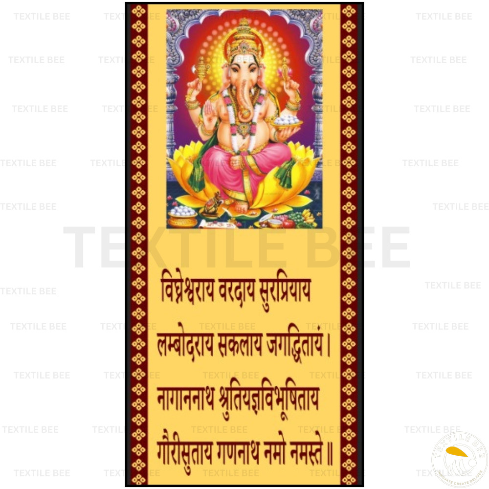 Infuse spirituality into your décor with our One-Side Printed Divine Mantra Design Hanging (20x48 Inches). Featuring sacred mantra patterns on premium polyester fabric, this hanging brings a serene and traditional touch to weddings, festive occasions, temples, and cultural events. Lightweight and easy to install, it adds elegance and divine ambience to any setting.