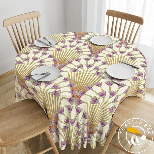 Add a touch of timeless elegance to your event décor with the PAPYRUS FLOWERS ROUNDERS. Featuring delicate floral motifs inspired by papyrus blossoms, this round table cover blends tradition with modern sophistication. Perfect for weddings, receptions, themed dinners, and luxury events. Available in customizable sizes for the perfect round table fit.