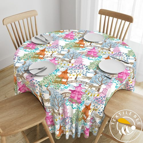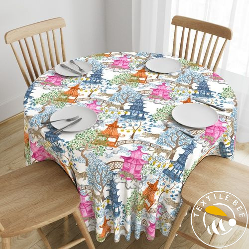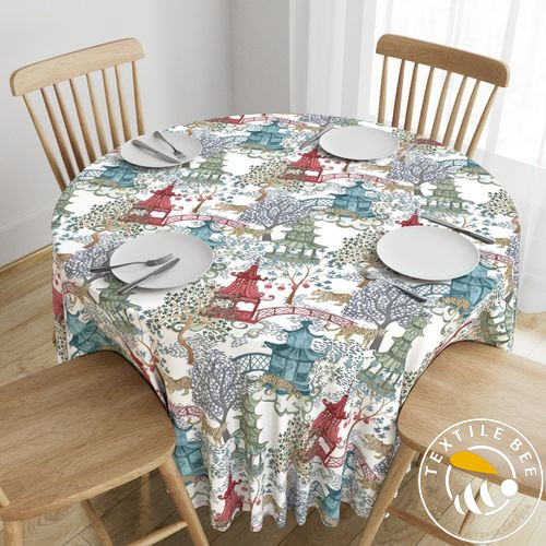 Turn your tables into a bold style statement with the PARTY LEOPARDS IN PAGODA FOREST Round Table Cover. Featuring an exotic mix of playful leopards, oriental pagoda motifs, and lush forest elements, this design brings a vibrant, adventurous, and luxurious touch to your décor. Perfect for themed parties, weddings, and high-fashion events. Available in customizable sizes for the perfect fit on round tables.
