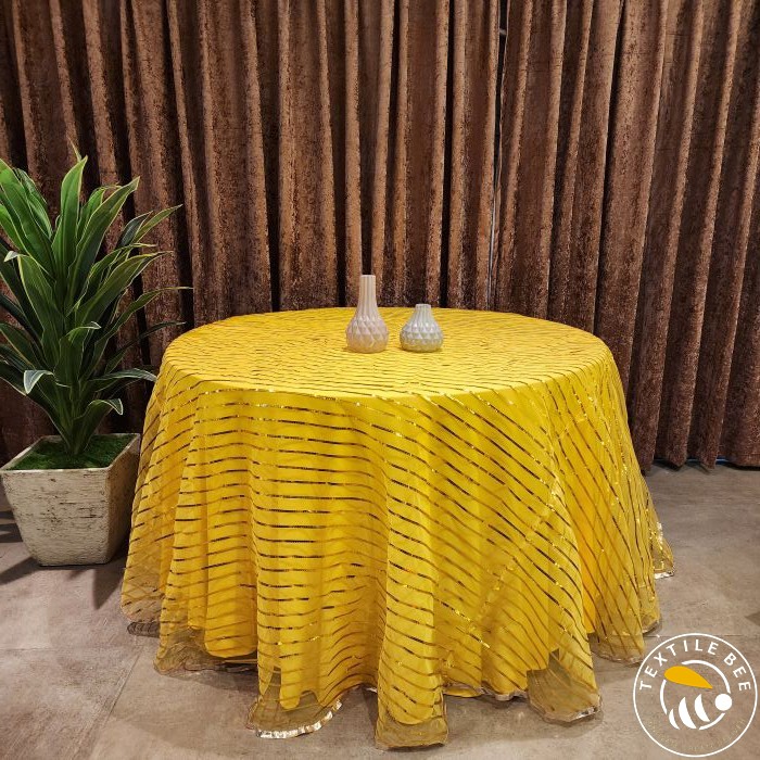 Light up your event space with the dazzling charm of our Radium Stripe Rounders. Designed with a striking blend of soft fabric and radiant stripe detailing, these round table covers are perfect for creating an eye-catching setup, especially under lights. The reflective radium stripes give a subtle glow, making your décor shine at night events, receptions, and themed parties.