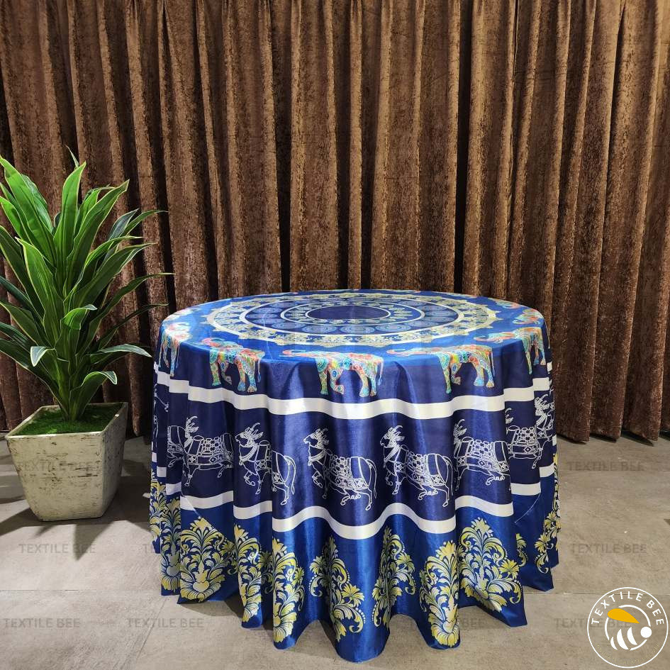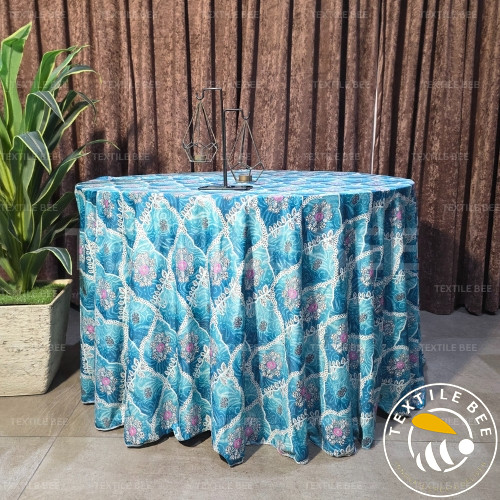 Elevate your décor with our Blue Base Round Table Rounders (9x9 Feet). Featuring a rich blue foundation, these covers add charm and elegance to any event. The versatile base makes them perfect for embroidery, applique, sequin, patchwork, or mirror work, creating a stylish and luxurious table setup. Made from premium velvet or polyester fabric, they are durable, reusable, and suitable for both traditional and modern themes.