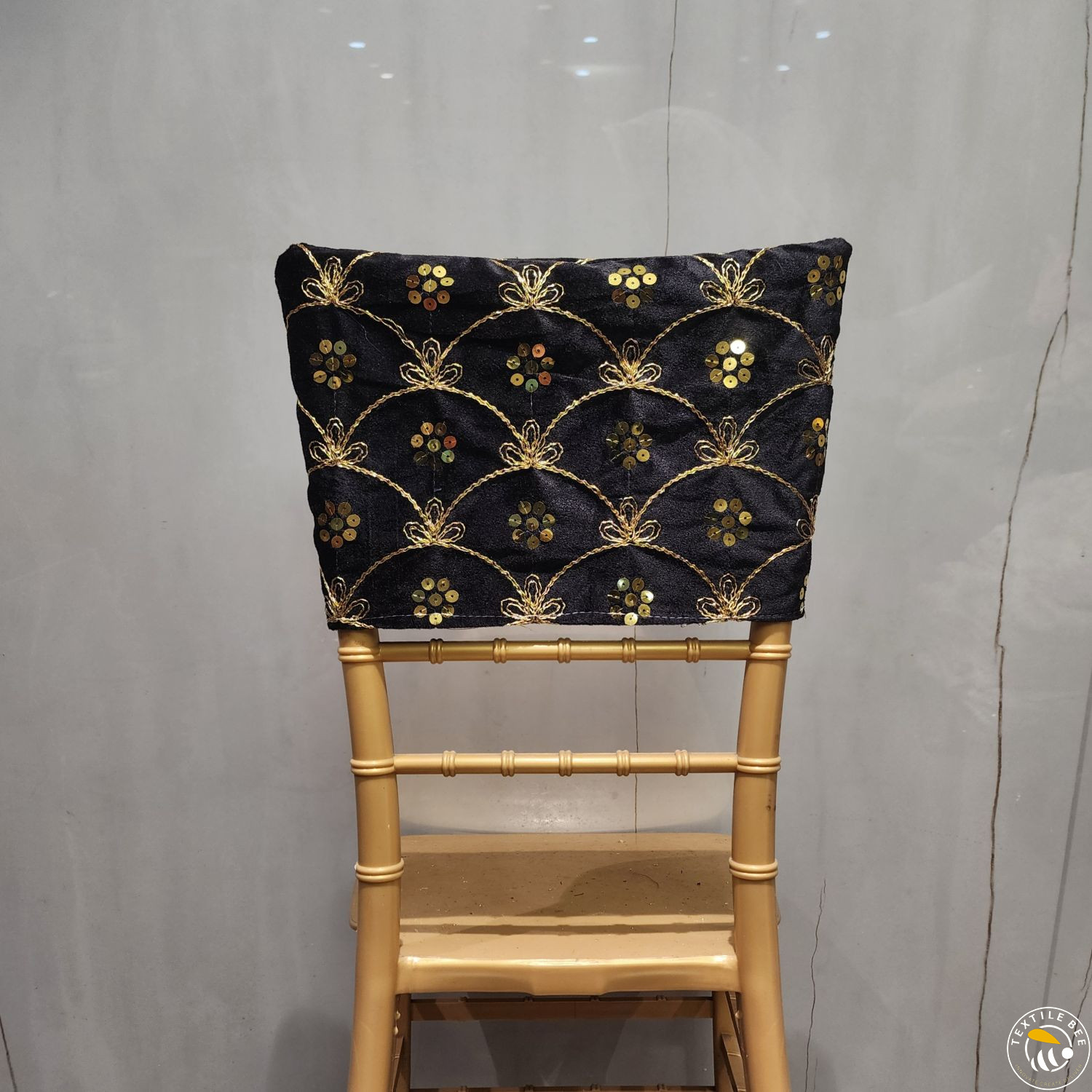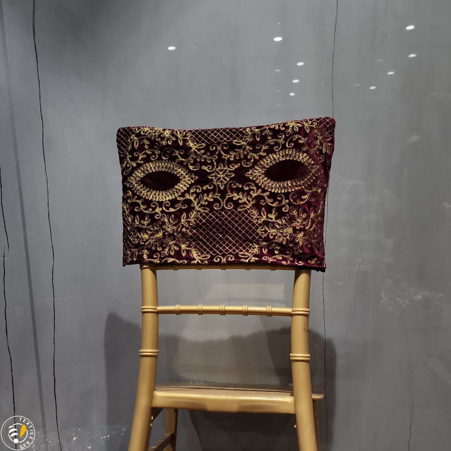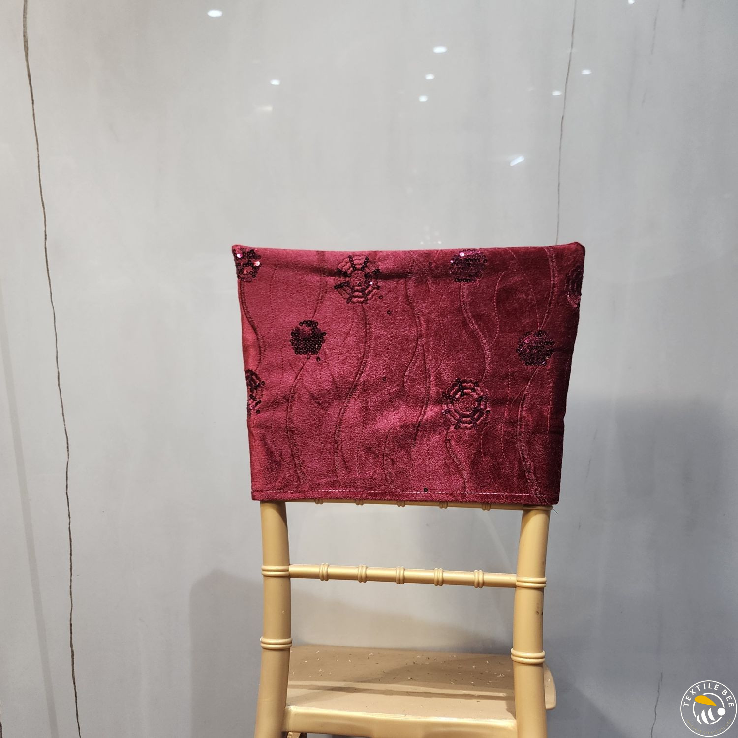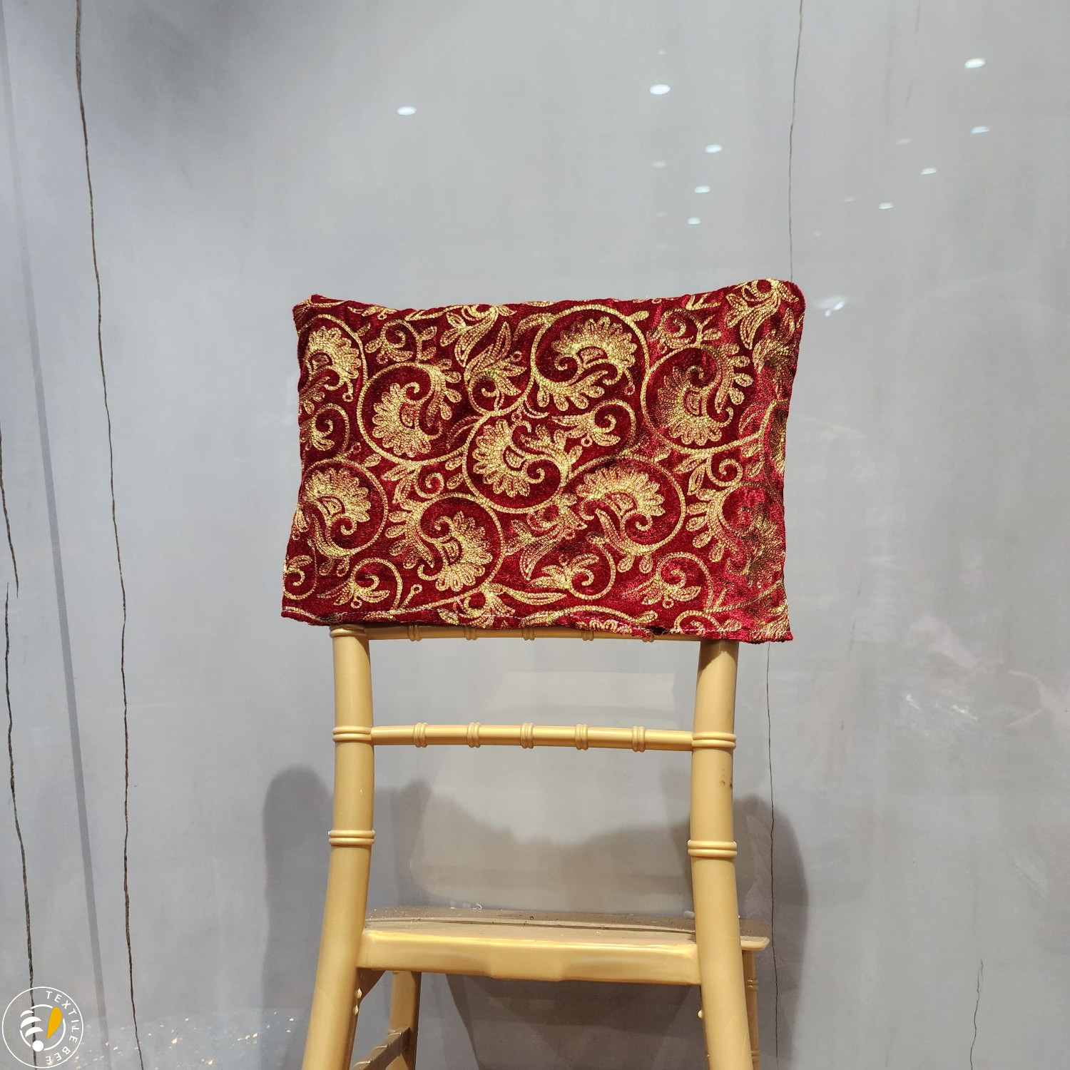 Bring a regal touch to your event seating with our Embroidered Chair Caps. Featuring a deep maroon velvet base adorned with intricate golden thread embroidery and shimmering sequins, these caps instantly elevate the look of any banquet or Chiavari chair. Perfect for weddings, receptions, festive events, and grand celebrations, they combine luxurious texture with fine craftsmanship to create a statement piece for your décor.