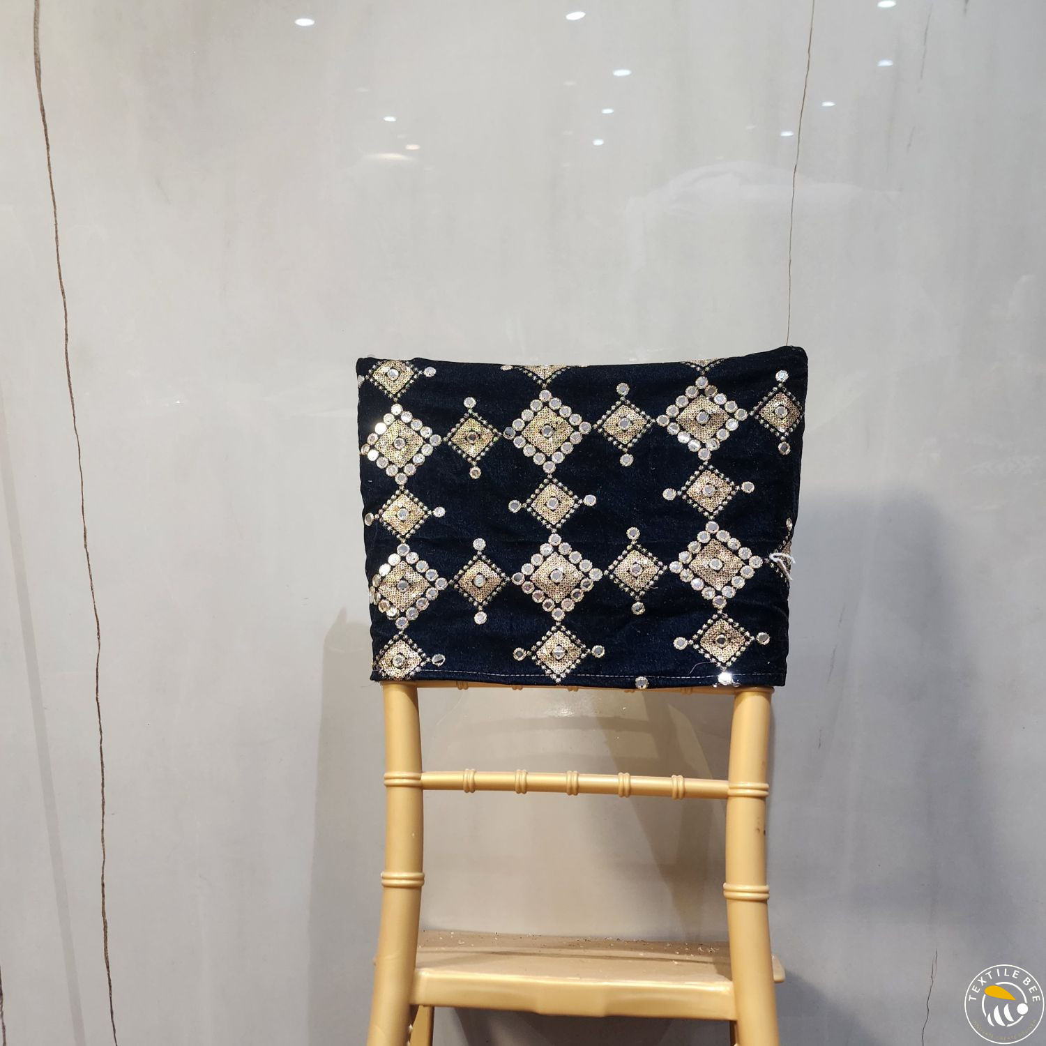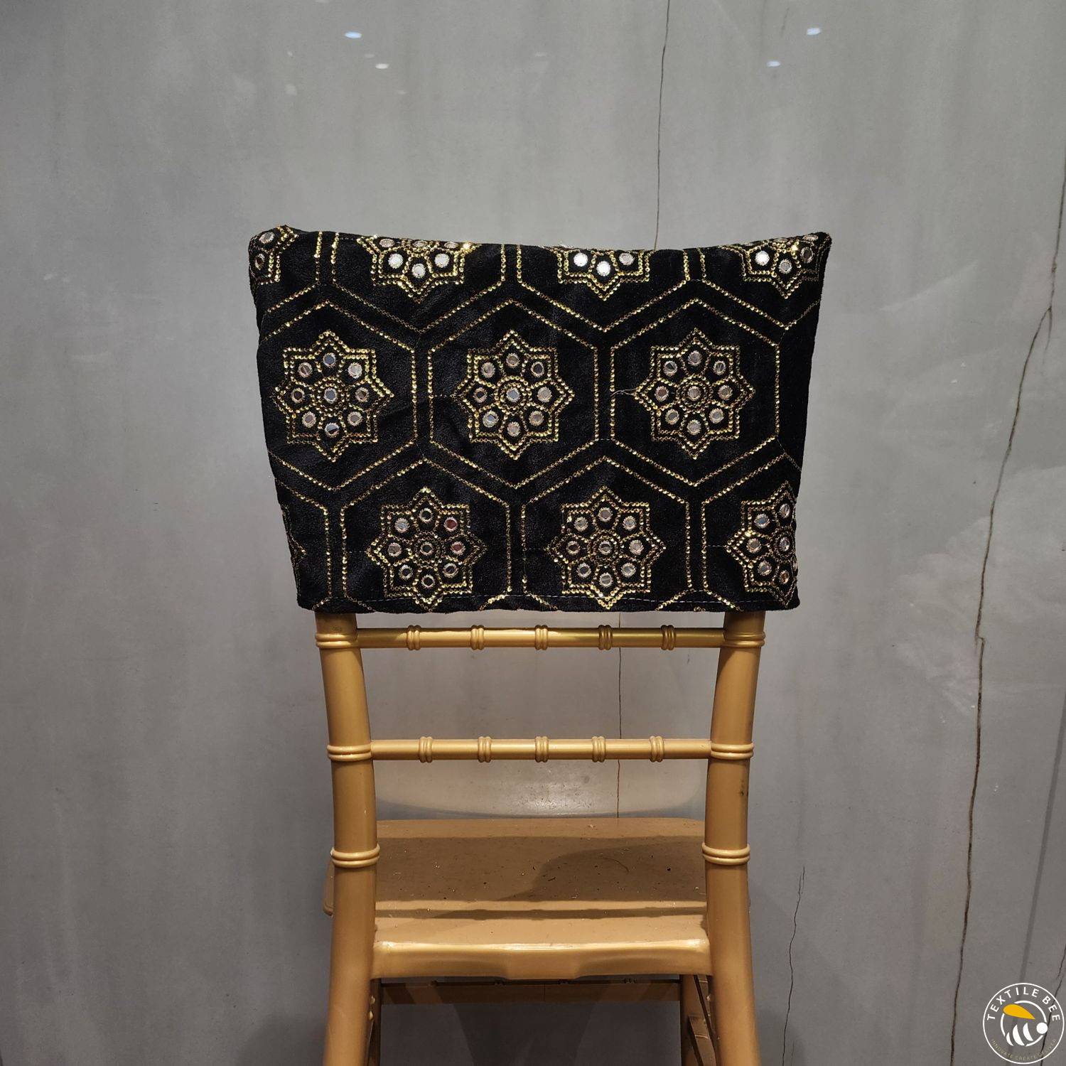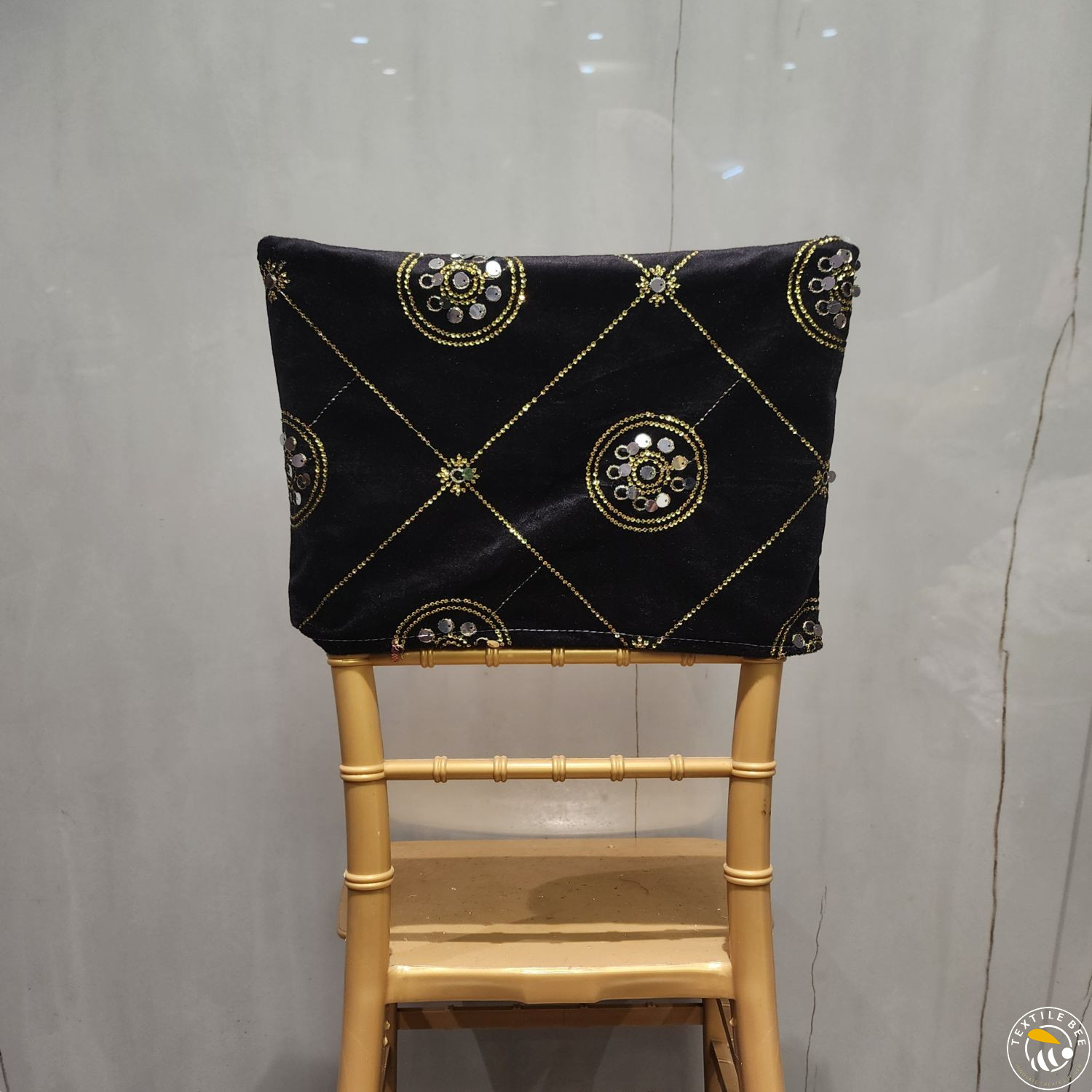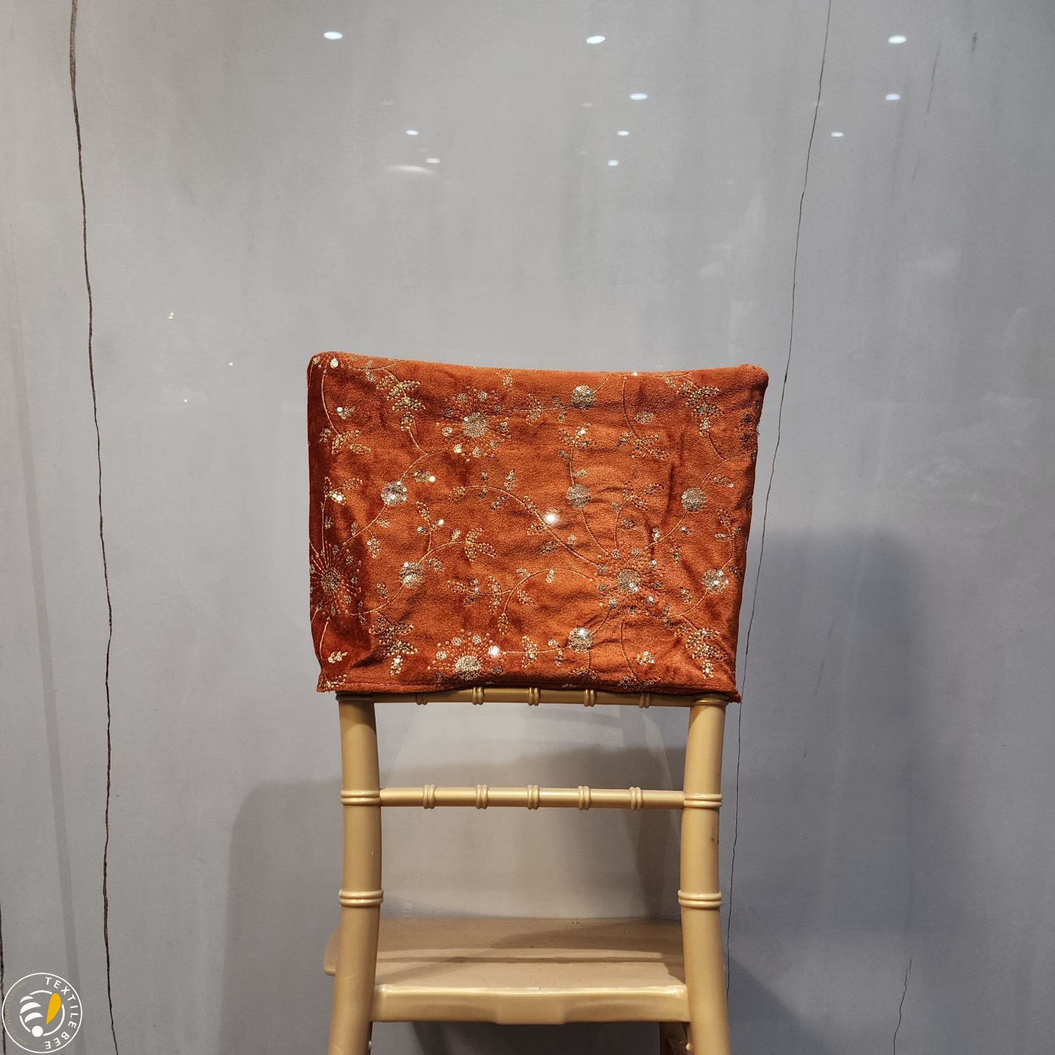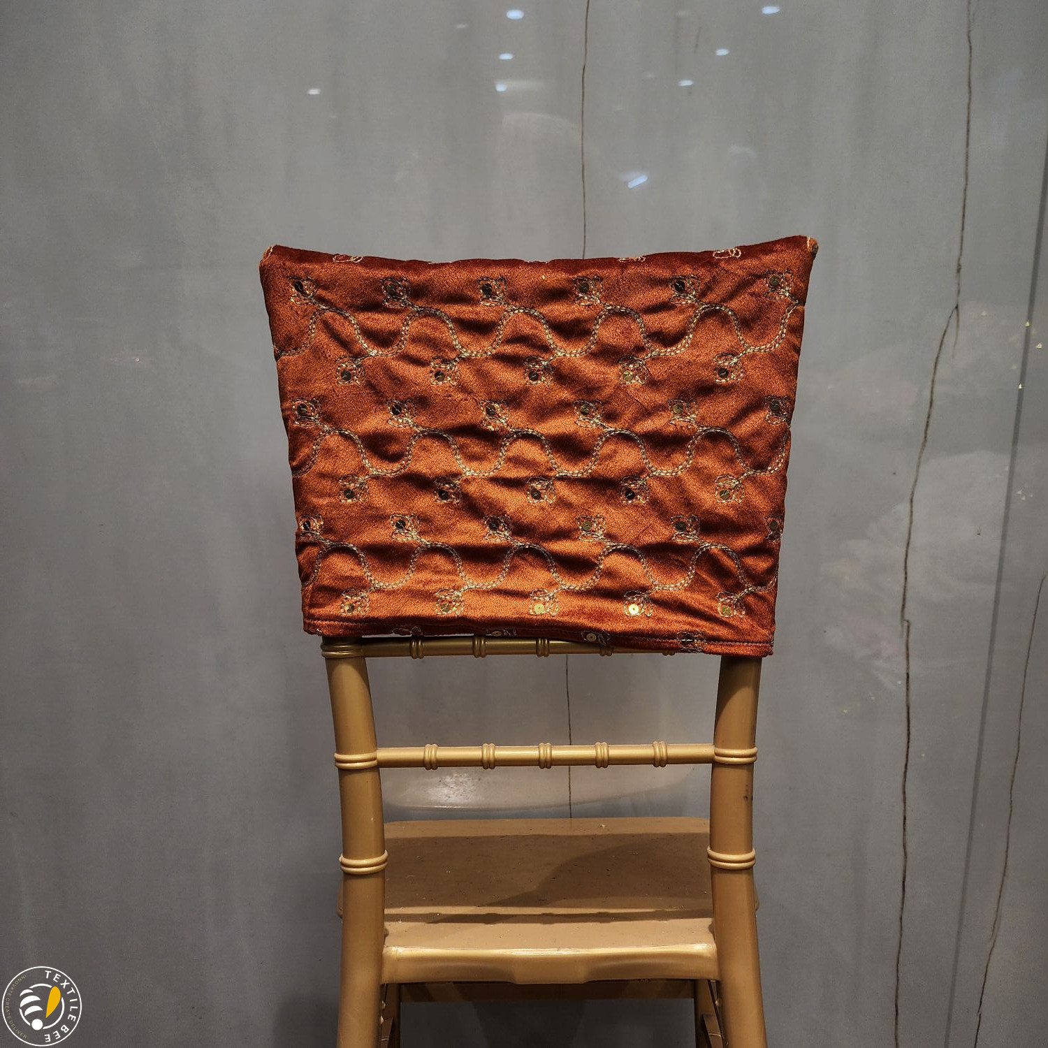 Bring a regal touch to your event seating with our Embroidered Chair Caps. Featuring a deep maroon velvet base adorned with intricate golden thread embroidery and shimmering sequins, these caps instantly elevate the look of any banquet or Chiavari chair. Perfect for weddings, receptions, festive events, and grand celebrations, they combine luxurious texture with fine craftsmanship to create a statement piece for your décor.