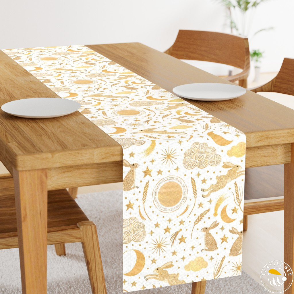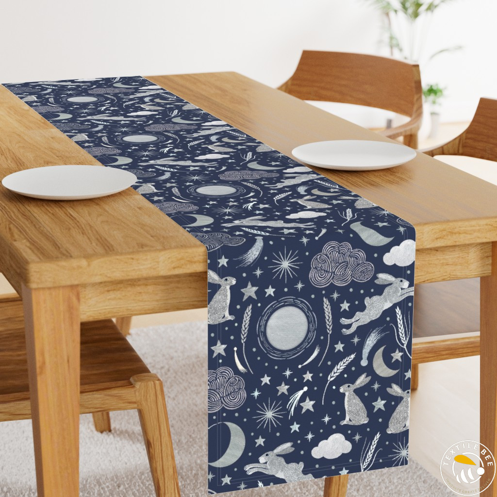 Celebrate folklore and charm with our Harvest Moon Hares Printed Table Runners. Featuring artistic hare motifs leaping under a glowing moon, this design captures the spirit of harvest nights and storytelling traditions. A unique blend of whimsy and elegance, it brings warmth and character to any table setting.