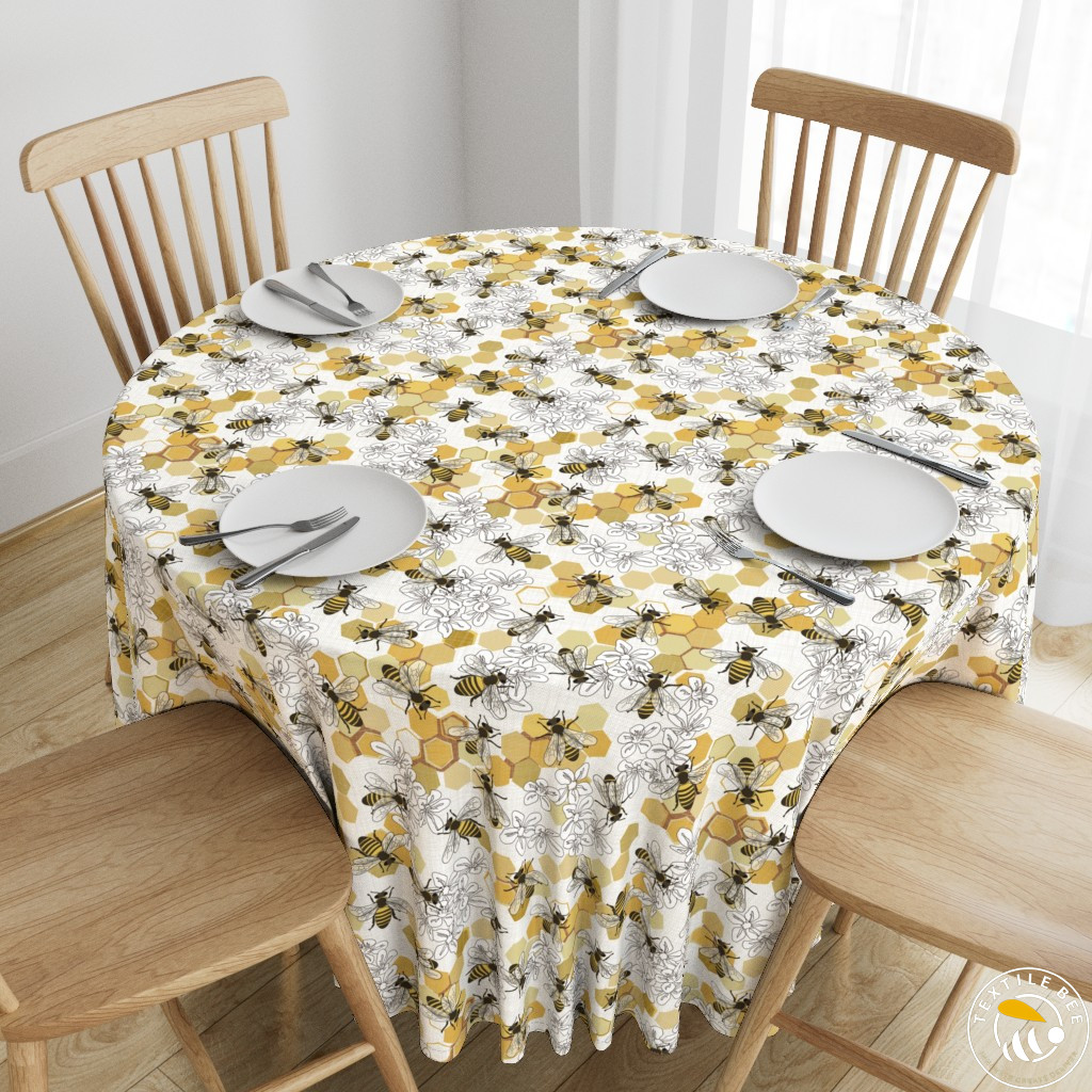 Add a playful yet elegant charm to your décor with the HONEY BEES PRINT ROUNDERS. Featuring delicate bee motifs with a stylish finish, this round table cover brings a natural, refreshing, and lively touch to any setup. Perfect for weddings, garden parties, themed events, or everyday dining. Available in customizable sizes to fit all round tables.
