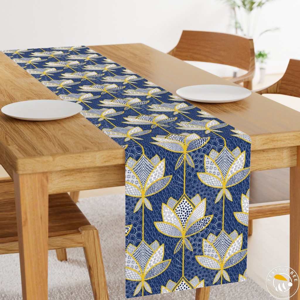 The Japanese Lotus Stroke Printed Table Runners blend traditional artistry with modern elegance. Featuring hand-drawn brushstroke lotus motifs, this design symbolizes purity, renewal, and timeless beauty, bringing a touch of cultural sophistication to your table décor.