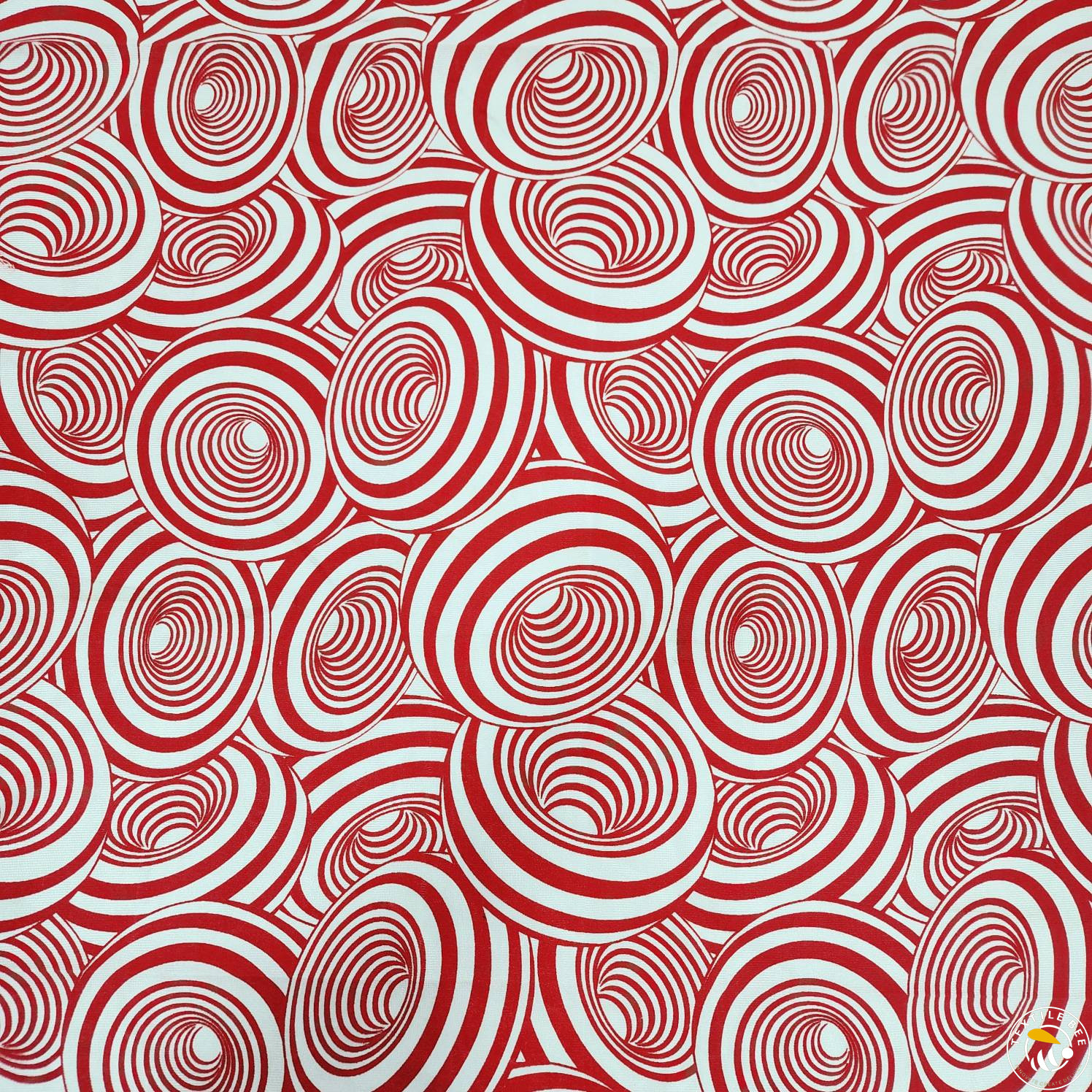 Bold red and white swirl print for a modern, eye-catching look