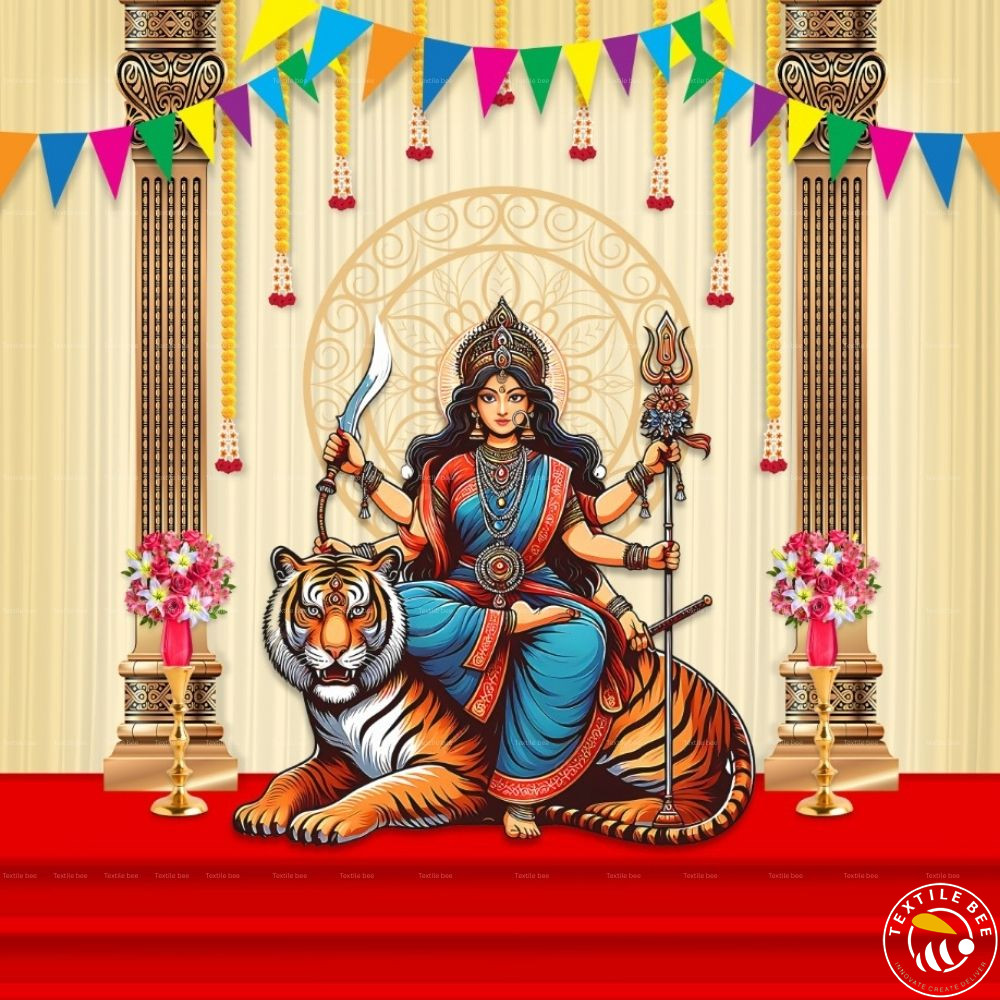 Celebrate the spirit of Navratri with our Navratri Ras Garba Theme Backdrop (10x10 Feet). Designed with vibrant festive patterns and traditional motifs, this backdrop perfectly captures the energy of Garba nights and Dandiya events. Made from durable polyester fabric, it is lightweight, easy to install, and reusable—ideal for cultural celebrations, stage décor, and festive gatherings.