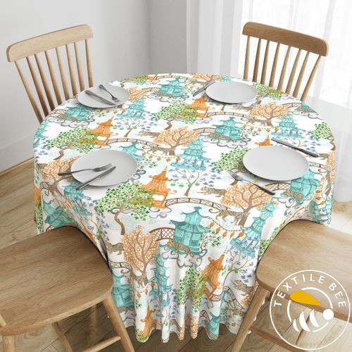 Turn your tables into a bold style statement with the PARTY LEOPARDS IN PAGODA FOREST Round Table Cover. Featuring an exotic mix of playful leopards, oriental pagoda motifs, and lush forest elements, this design brings a vibrant, adventurous, and luxurious touch to your décor. Perfect for themed parties, weddings, and high-fashion events. Available in customizable sizes for the perfect fit on round tables.
